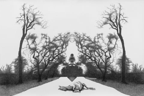 Bennett-Carpenter’s compositions function as Rorschach-esque paracosms referencing disintegration, abandonment, restoration, and organic growth. Unlike an abstract Rorschach ink blot, these images are drawn from specific trees that can be located on a map.
